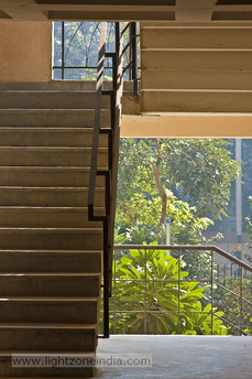 - The effective use of versatile jalis in the sky walks, lift lobbies, stairways not only shade and create shadows in the transitional spaces but also function as wind stimulators acting as passive coolers. They further reduce the heat inside and block the direct sun.